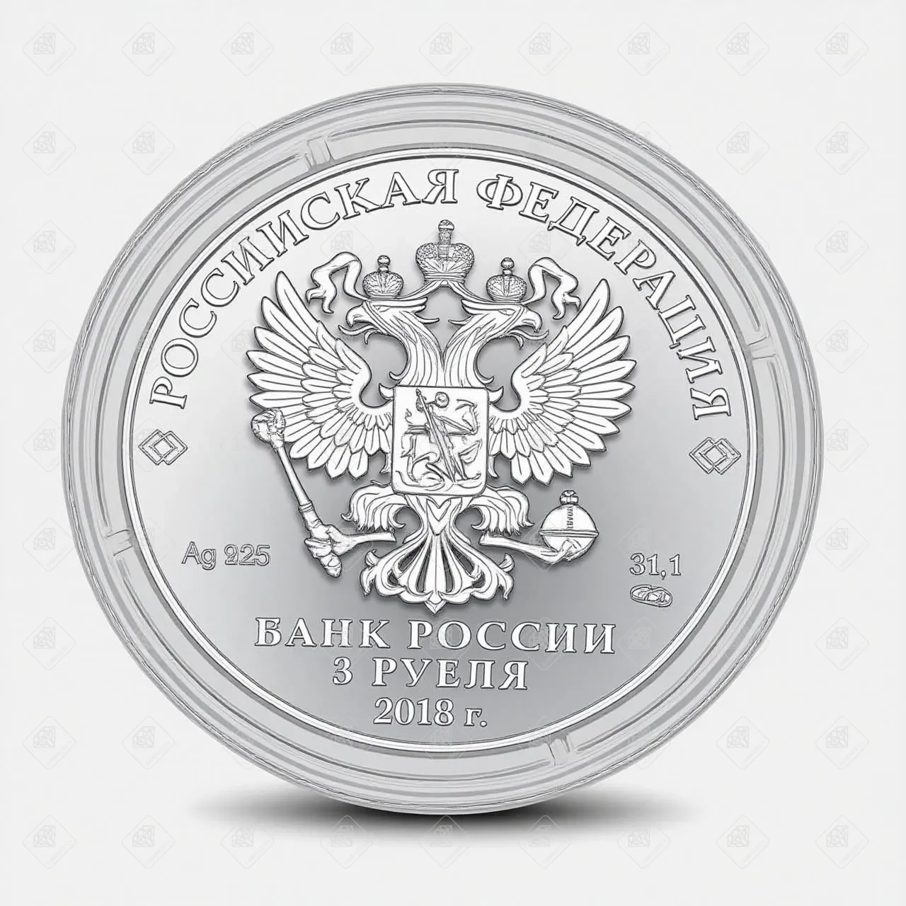 Купить 01214/5111-0361/Чемпионат мира по футболу FIFA 2018 в России 3 рубля, серебро 999, вес 31.1 г. в Самаре