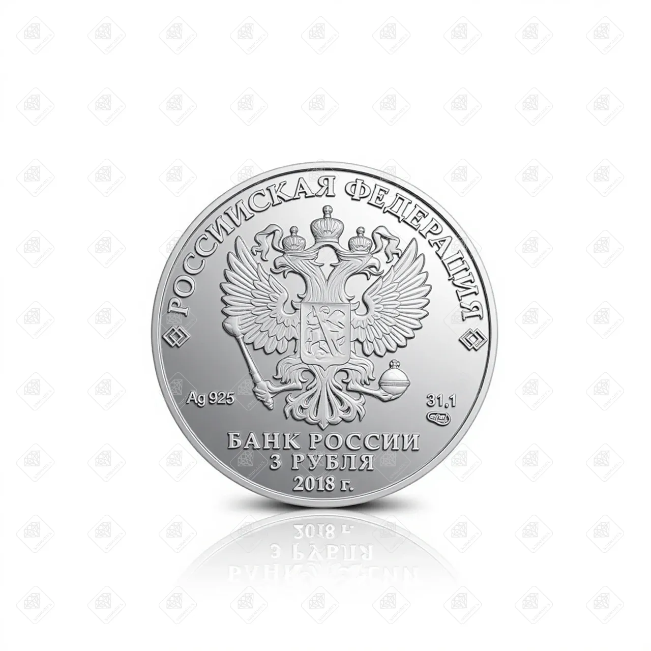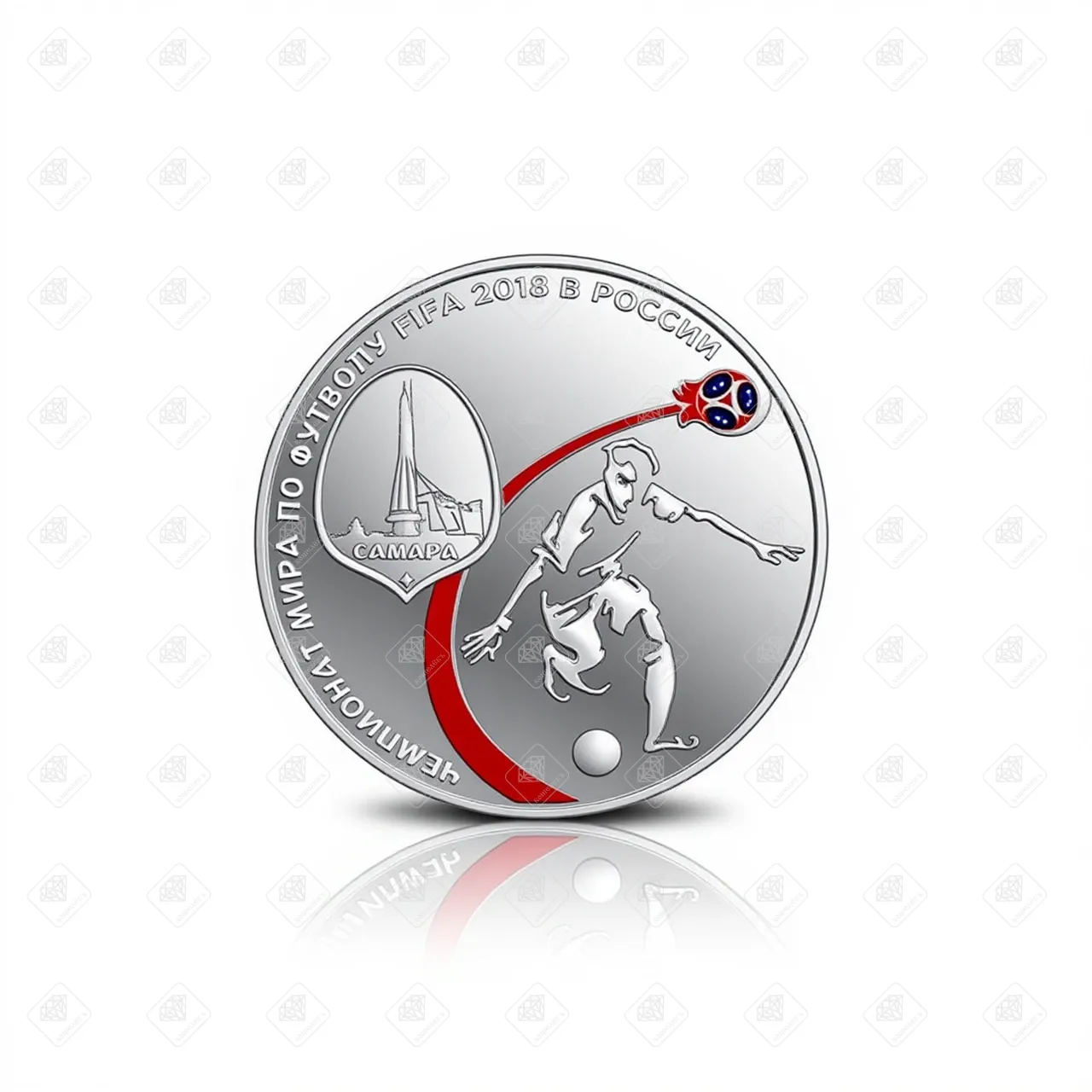 Купить 01214/5111-0361/Чемпионат мира по футболу FIFA 2018 в России 3 рубля, серебро I категория 925, вес 31.1 г. в Самаре