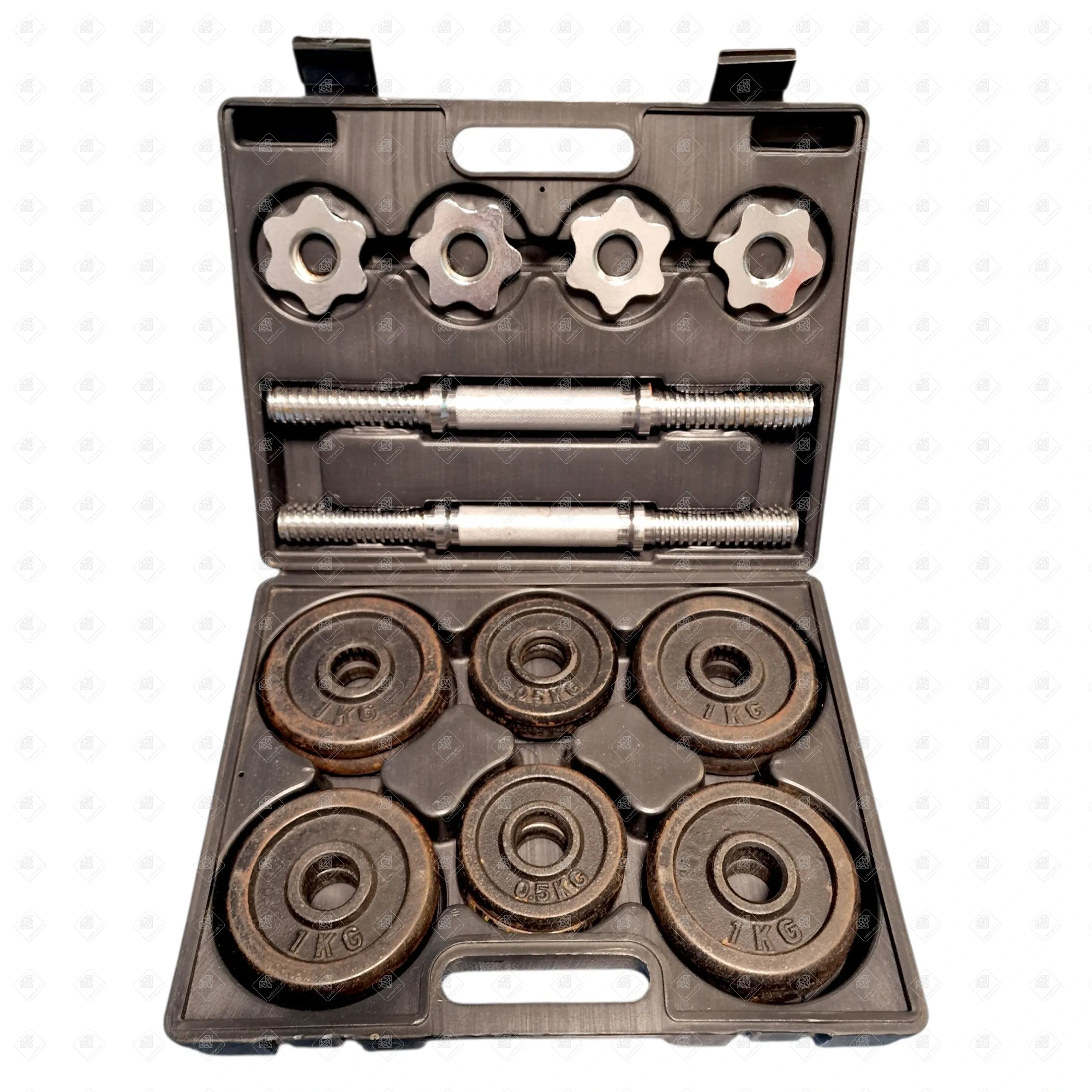 В комплекте: Кейс, 2 грифа, блины общим весом 10кг