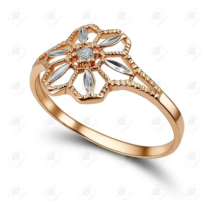 Купить Кольцо ромашка с фианитом, золото 585 II Категория, вес 1.25 г. в Самаре
