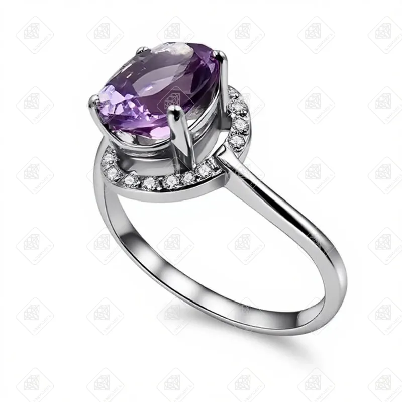 Купить Кольцо с аметистом и бриллиантами 16бр кр57 0,0448ct 5/7a, золото 585 II Категория, вес 2.32 г. в Самаре