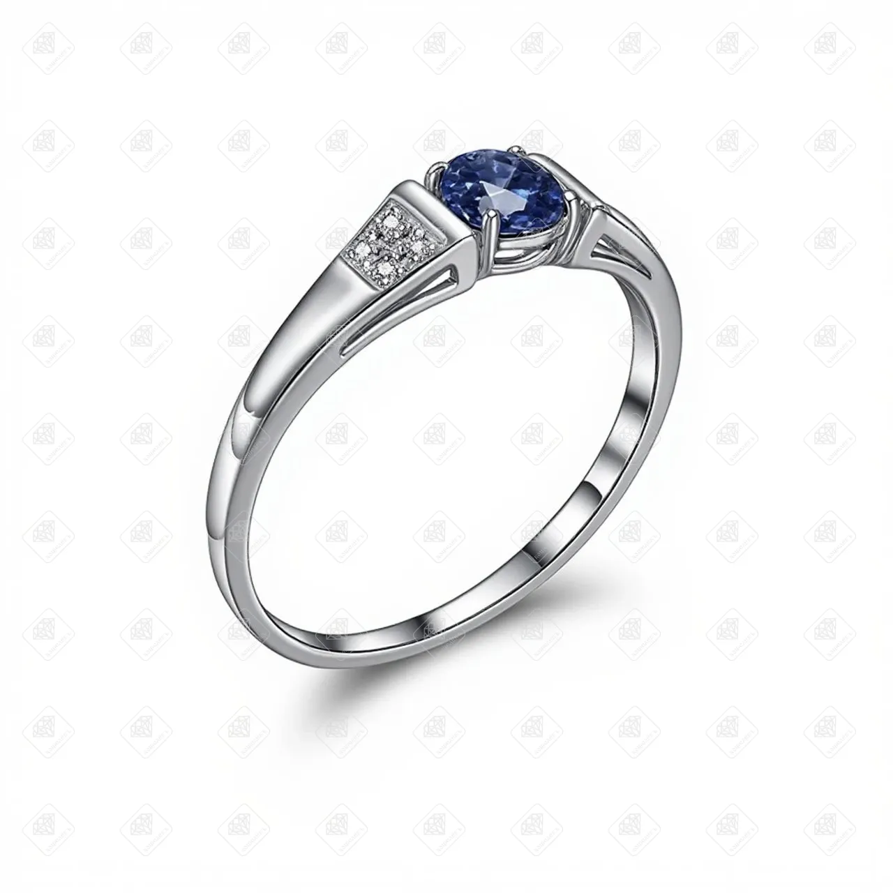 Купить Кольцо с бриллиантами и синтетическим сапфиром, золото 585 (14K), вес 2.12 г. в Самаре