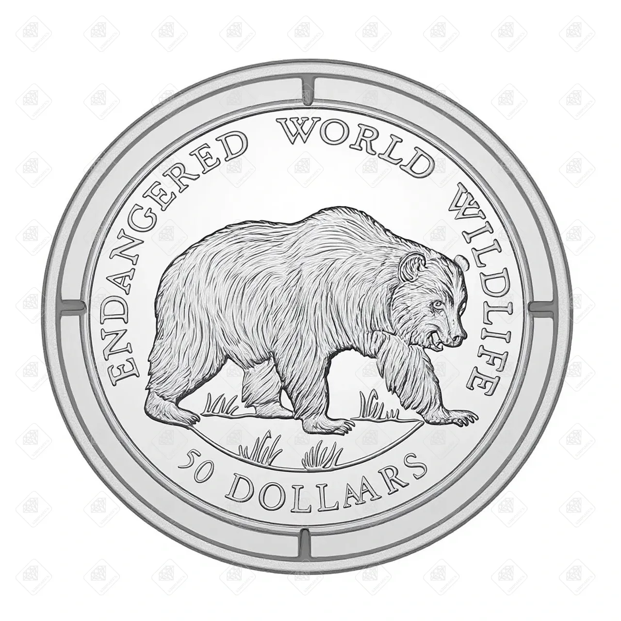 Купить Острова Кука 50 долларов 1990 г. (Вымирающие виды - Гризли) (Proof), серебро 999, вес 19.8 г. в Самаре