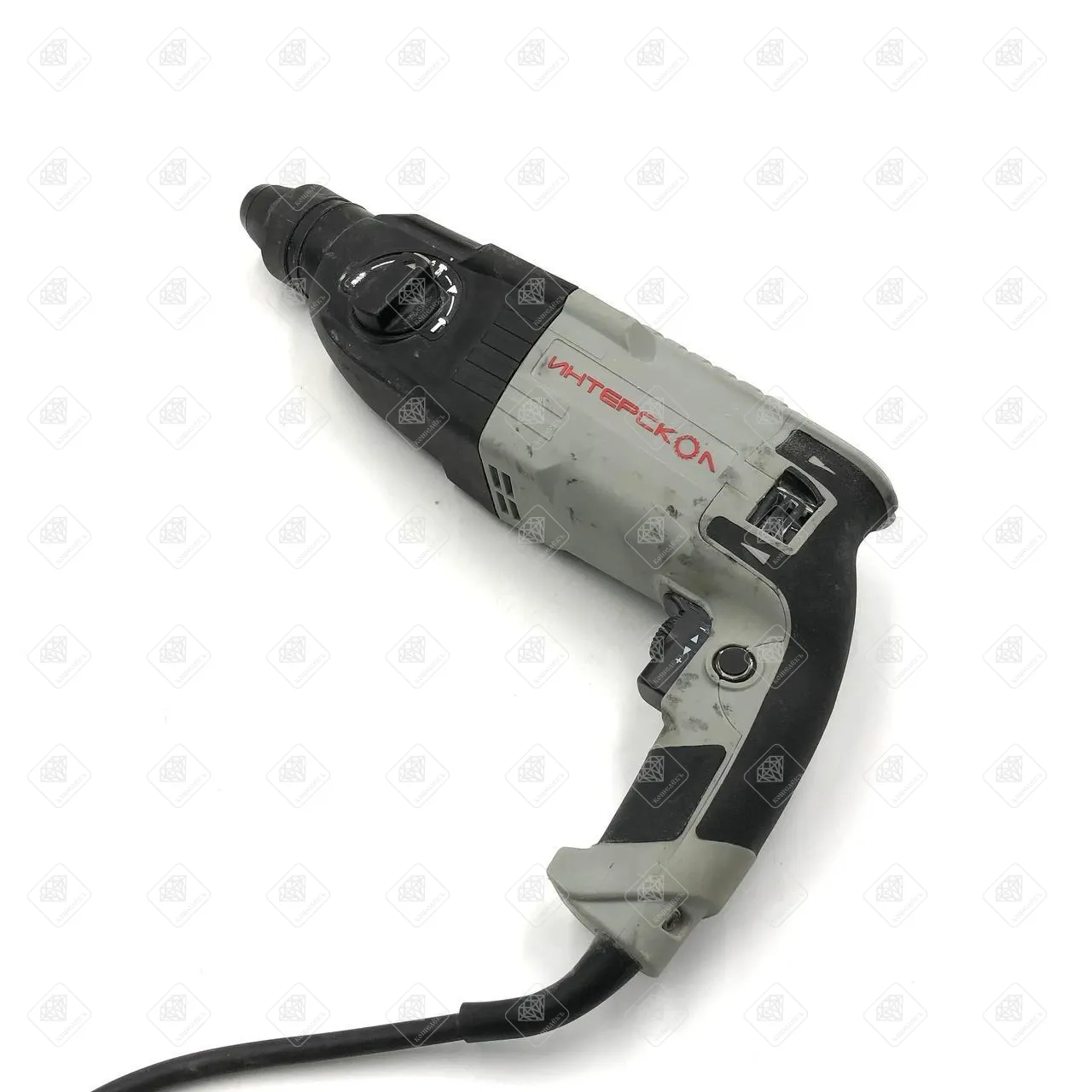 грязь, царапины, потертости, реверс и регулировка мощности забиты пылью. комплект: кейс, 3 сверла, 3 зубила, смазка