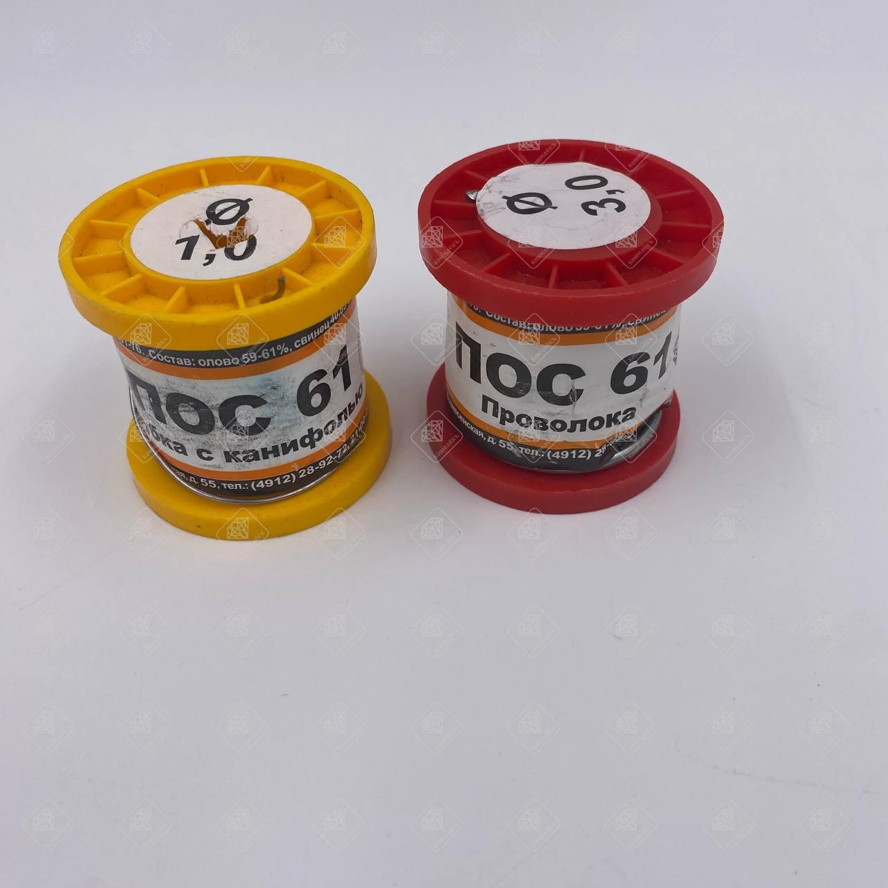 Припой ПОС-61 диаметром 1 и 3 мм, с канифолью 100 гр.