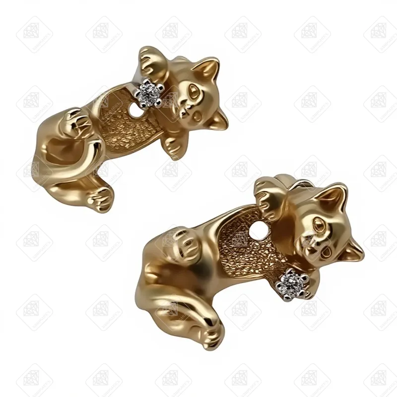 Купить Серьги Кошечки с Бриллиантами, золото 585 (14K), вес 8.86 г. в Самаре