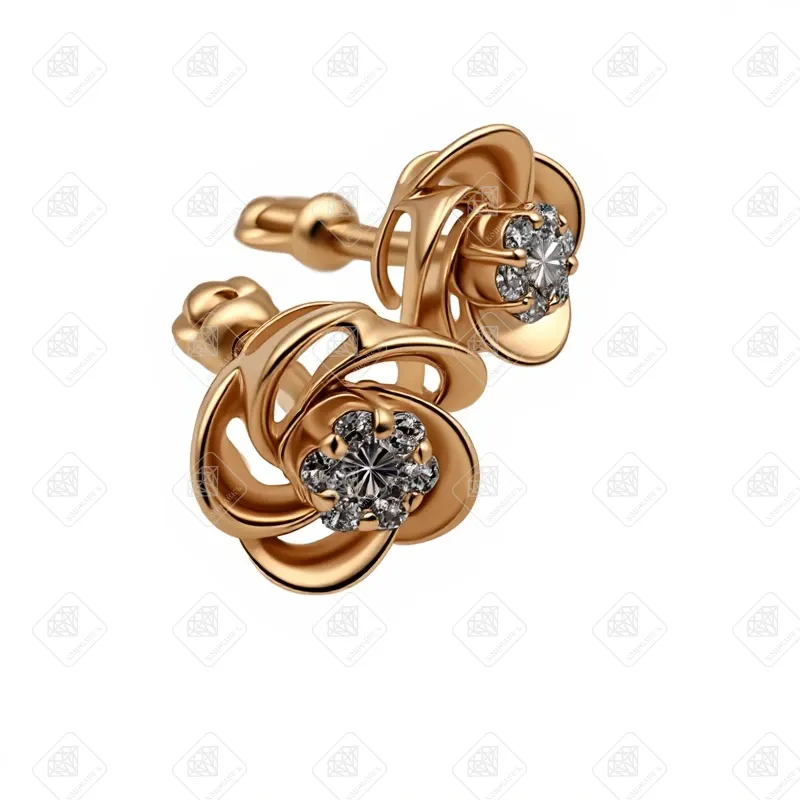Купить Серьги Роза с фианитами, золото 585 II Категория, вес 2.26 г. в Самаре