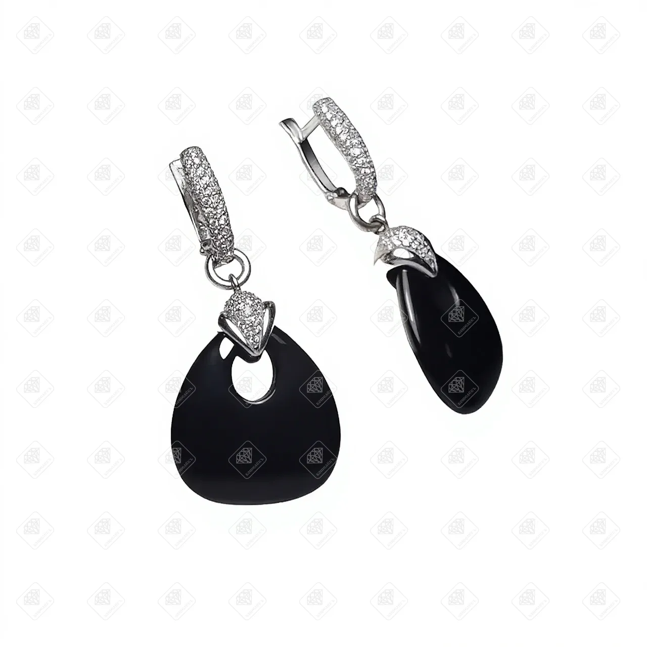 Купить Серьги с агатом и фианитами, золото 585 (14K), вес 9.95 г. в Самаре