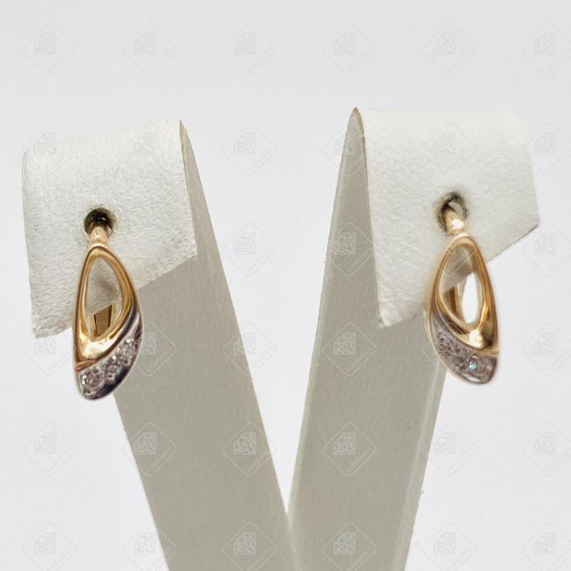Купить Серьги с бриллиантами 2Бр Кр 57 0,026ct 5/7А 4Бр Кр57 0,032ct 5/7А, золото 585 III Категория, вес 1.91 г. в Самаре