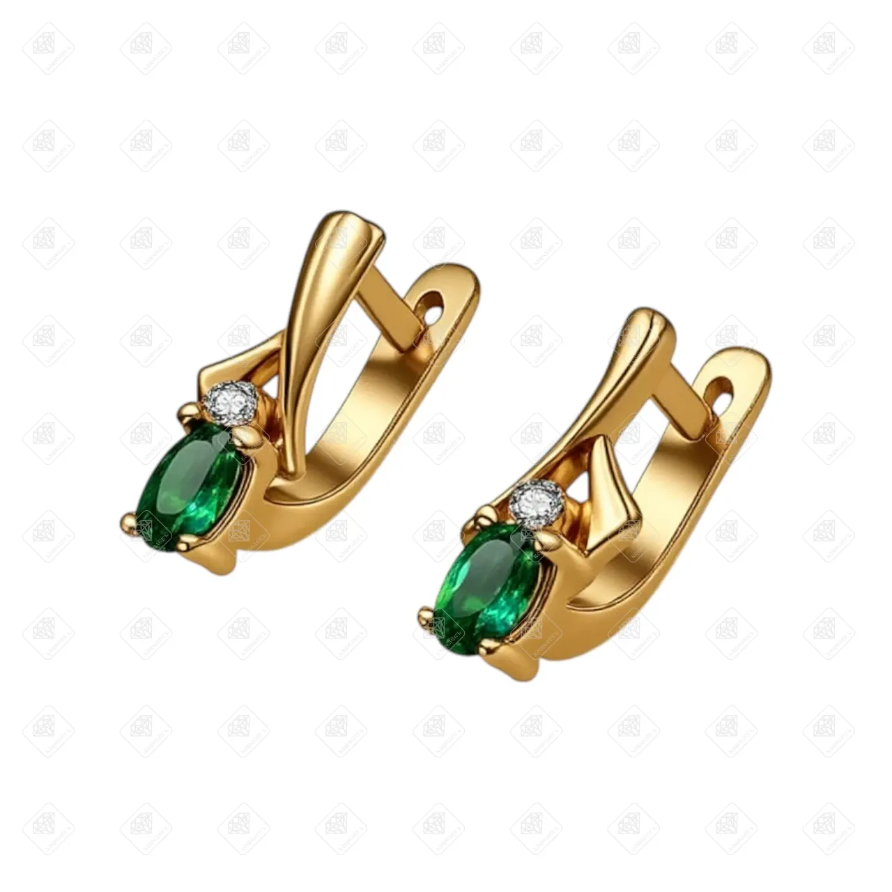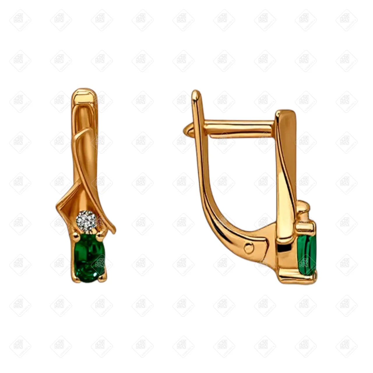 Купить Серьги с гидротермальными изумрудами и фианитами, золото 585 II Категория, вес 3.28 г. в Самаре