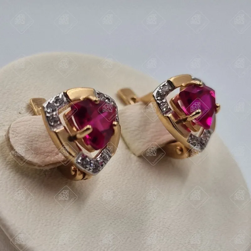 Купить Серьги с Корундами рубина, золото 585 II Категория, вес 2.89 г. в Самаре