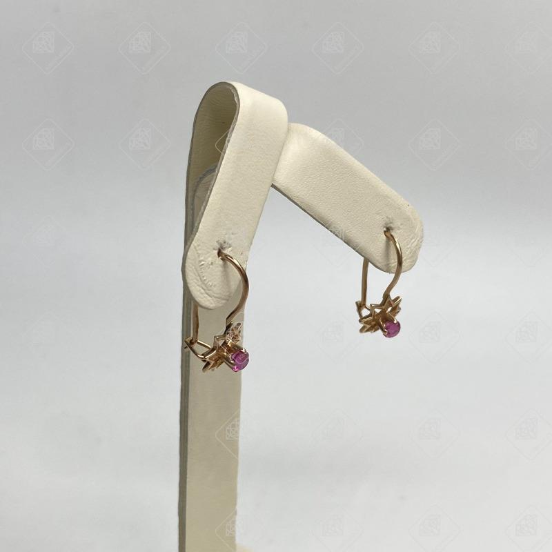 Купить серьги с розовым камнем, золото 585 III Категория, вес 1.67 г. в Самаре