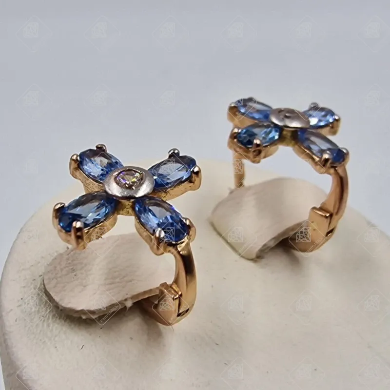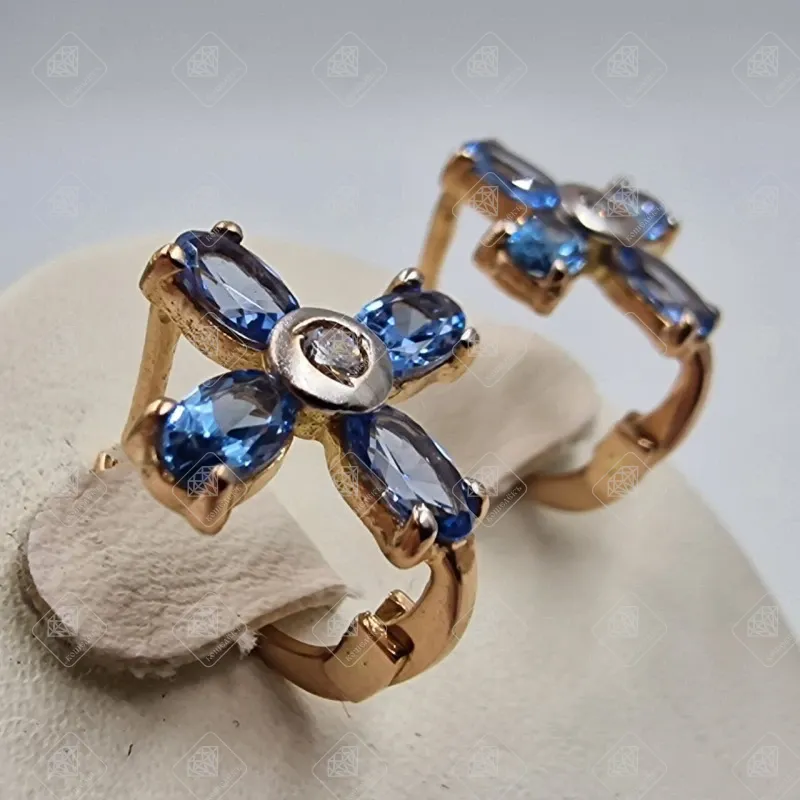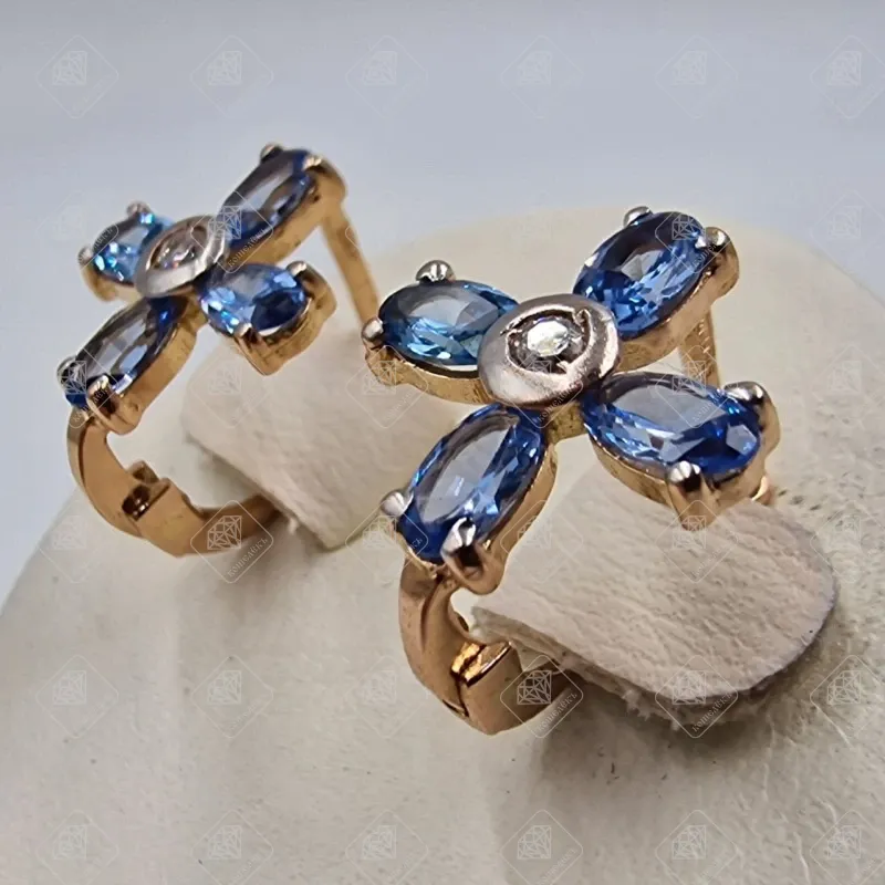 Купить Серьги с Топазом Swiss Blue, золото 585 II Категория, вес 2.94 г. в Самаре
