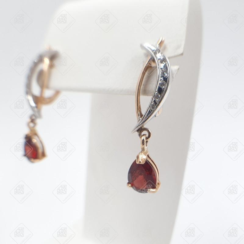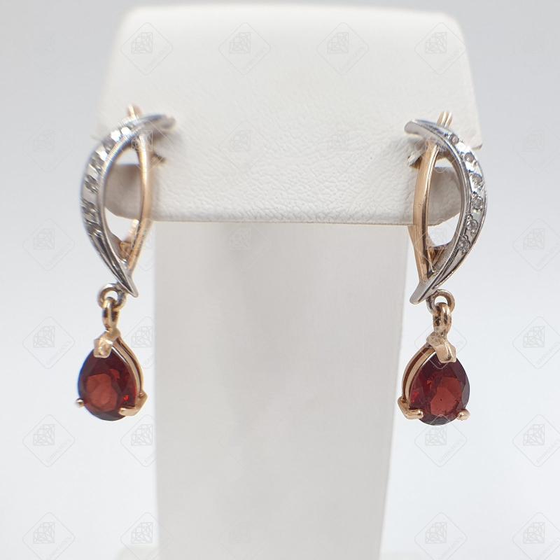 Купить Серьги с вставками (гранат, фианит), золото 585 II Категория, вес 5.36 г. в Самаре