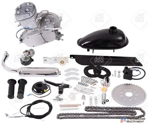 Двигатель веломотор F80 (80 см³), комплект для установки, чёрного цвета — комплект, предназначенный для самостоятельной установки на велосипед. Лучше всего подходит для дорожных велосипедов на колёсах 28 дюймов. Размеры двигателя (для установки на раму): длина 260мм, ширина 130мм, высота 230мм Технические характеристики:– Двигатель: одноцилиндровый, двухтактный— Охлаждение: воздушное— Рабочий объем: 80 см³— Максимальная мощность: 3 л. с.— Максимальный крутящий момент: 2,3 Нм— Максимальная скорость — до 50 км/ч— Вид топлива: масло-бензиновая смесь (бензин не ниже А-92)— Тип сцепления: сухое, фрикционного типа— Расход топлива: 1,7 литра на 100 км— Вес двигателя: 10,8 кг— Объем топливного бака: 1,5 литра— Цепь 415 шаг, 110 звеньев, длина 700мм Рабочая смесь - Бензин + Масло. Пропорции: при обкатке 1:16 (1 литр бензина + 60 грамм масло). Пропорции: после обкатки 1:20 (1 литр бензина + 50 грамм масло).*Товар, бывший в употреблении. Можно приобрести с доставкой по всей России